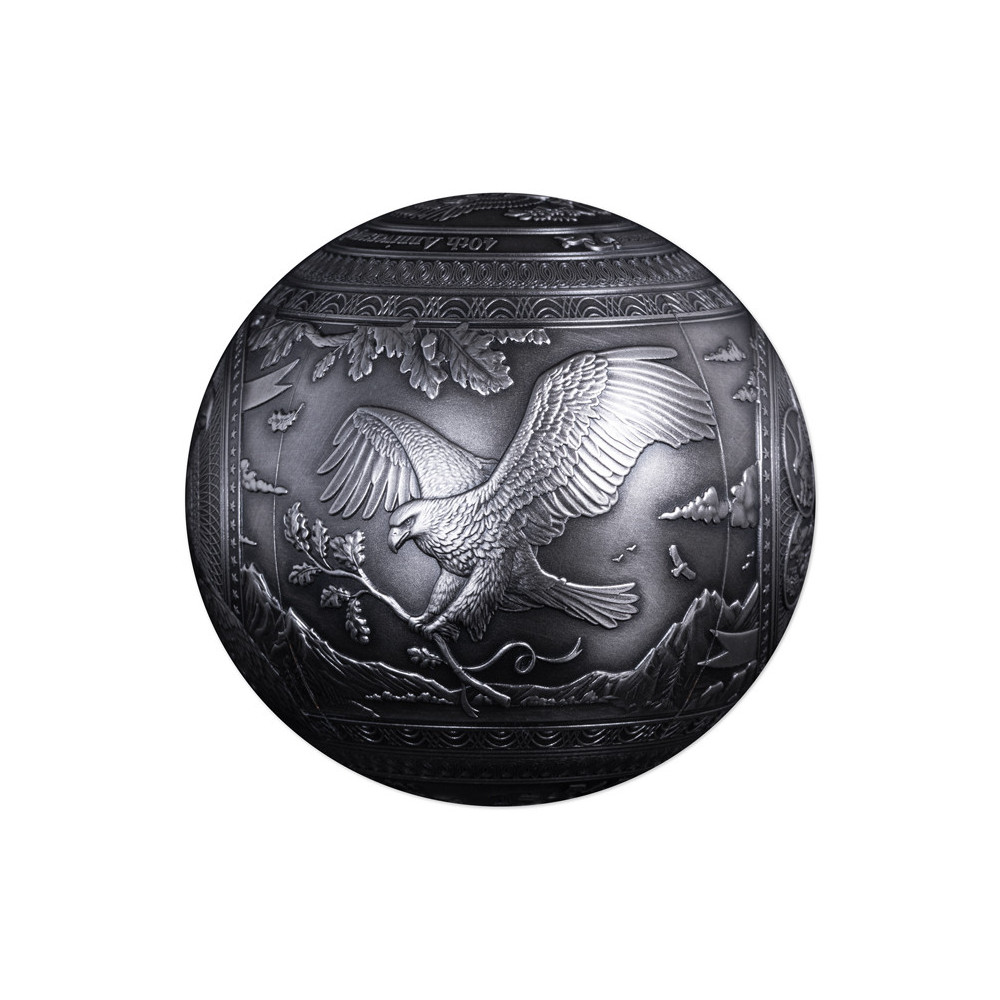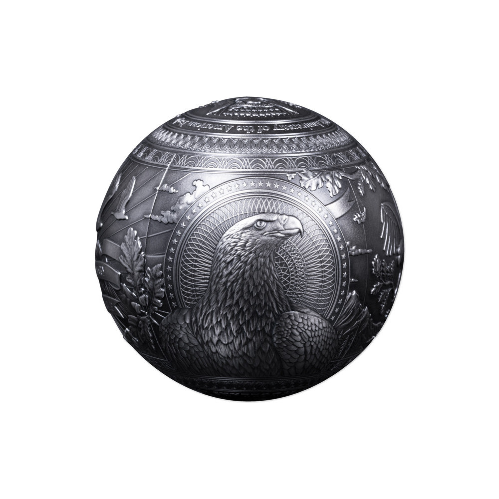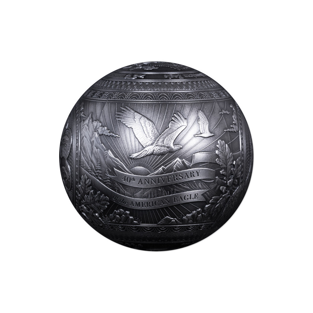 See kaunis 1 kg kaaluv hõbemünt tähistab Ameerika kotka 40. aastapäeva, mis on üldtuntud kui Ameerika Ühendriikide uhkust, vaimu ja identiteeti kehastav rahvuslind. Mündil on ilus ümmargune kuju, kaunis kujundus, antiikviimistlus ja see on luksuslikus karbis koos autentsussertifikaadiga.