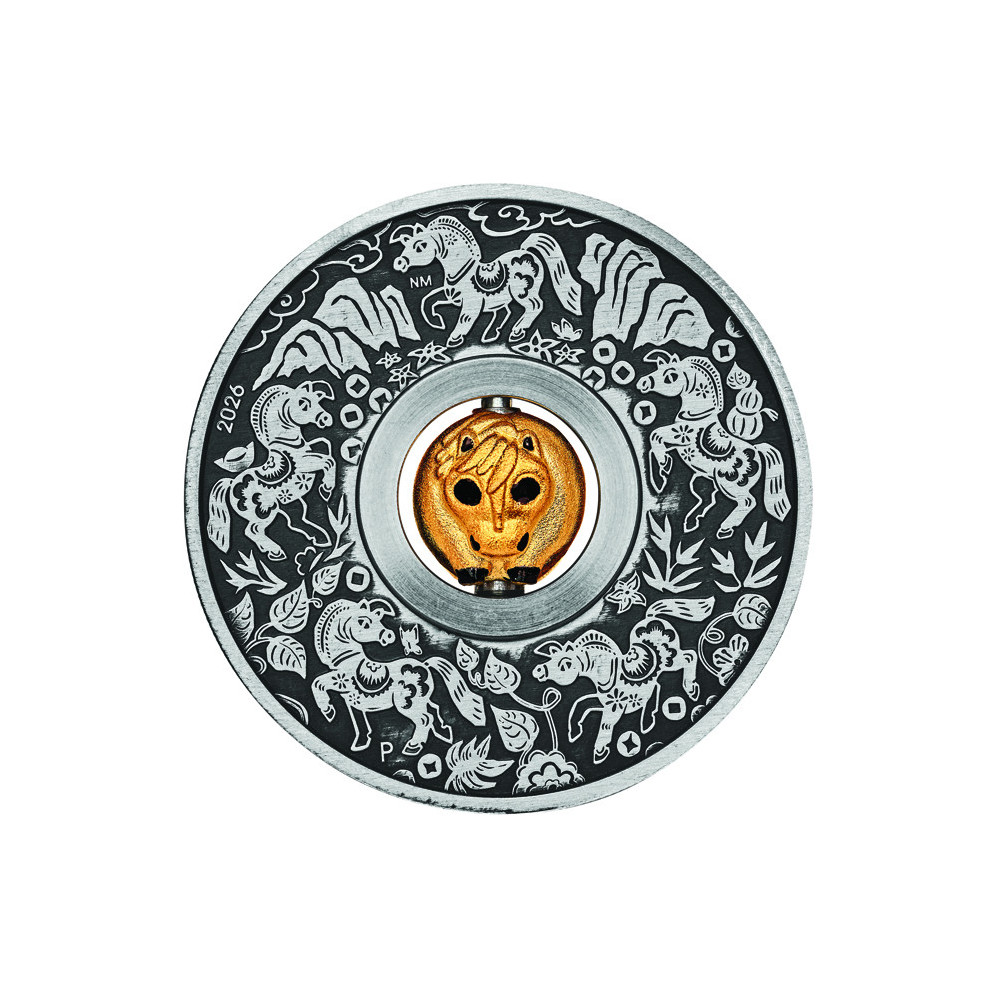 Mündi tagaküljel on kujutatud hobuse kujuline pöörlev kullatud hõbepael. Seda ümbritsevad viis eri asendis olevat hobust, mis on kujutatud Hiina paberilõike stiilis ja stiliseeritud lehtedega. Mündil on ka Perth Mint'i rahapaja "P" ja väljalaskeaasta 2026.