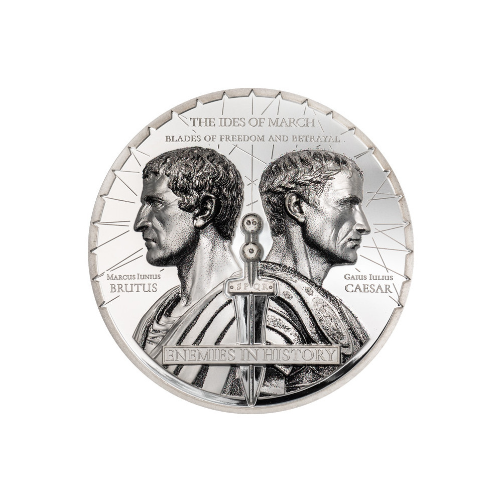 The coin Caesar vs. Brutus - Blades of Liberty and Treason pays tribute to one of the most famous landmarks in world history: 15 March 44 BC, the "Ides of March". This date symbolizes Caesar's assassination and the inextricable link between freedom, treason and power. The duality of these events is depicted in an eye-catching design, with the coin capturing both heroic and tragic moments.