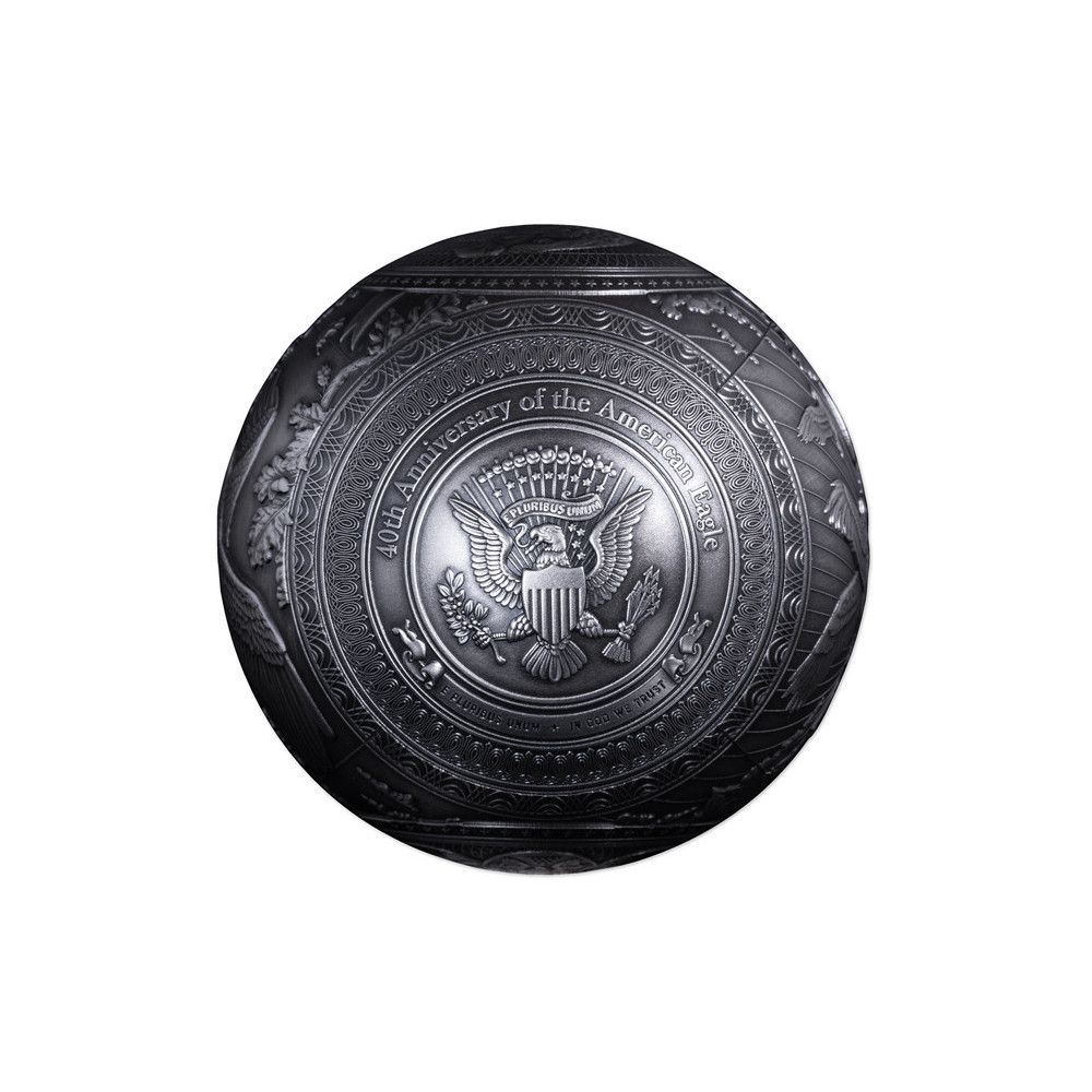 This beautiful 1 kg silver coin commemorates the 40th anniversary of the American eagle, commonly known as the national bird that embodies the pride, spirit and identity of the United States. The coin has a beautiful round shape, beautiful design, Antique Finish finish and comes in a deluxe case along with a certificate of authenticity.