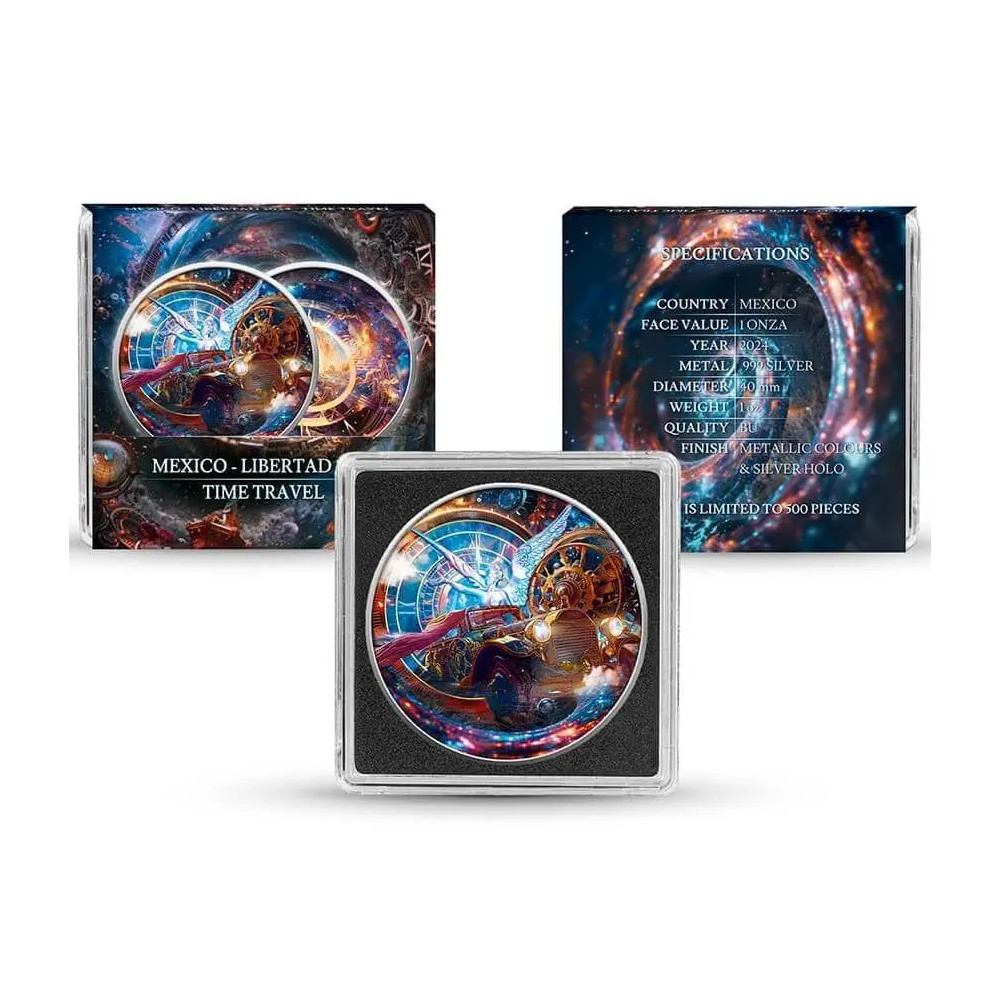 Although no longer legal tender due to its artistic refinement, this altered Libertad remains an exceptional piece for collectors looking for unique Mexican silver coins. Add a touch of holographic brilliance to your collection with one of the first issues in the Time Travel series.